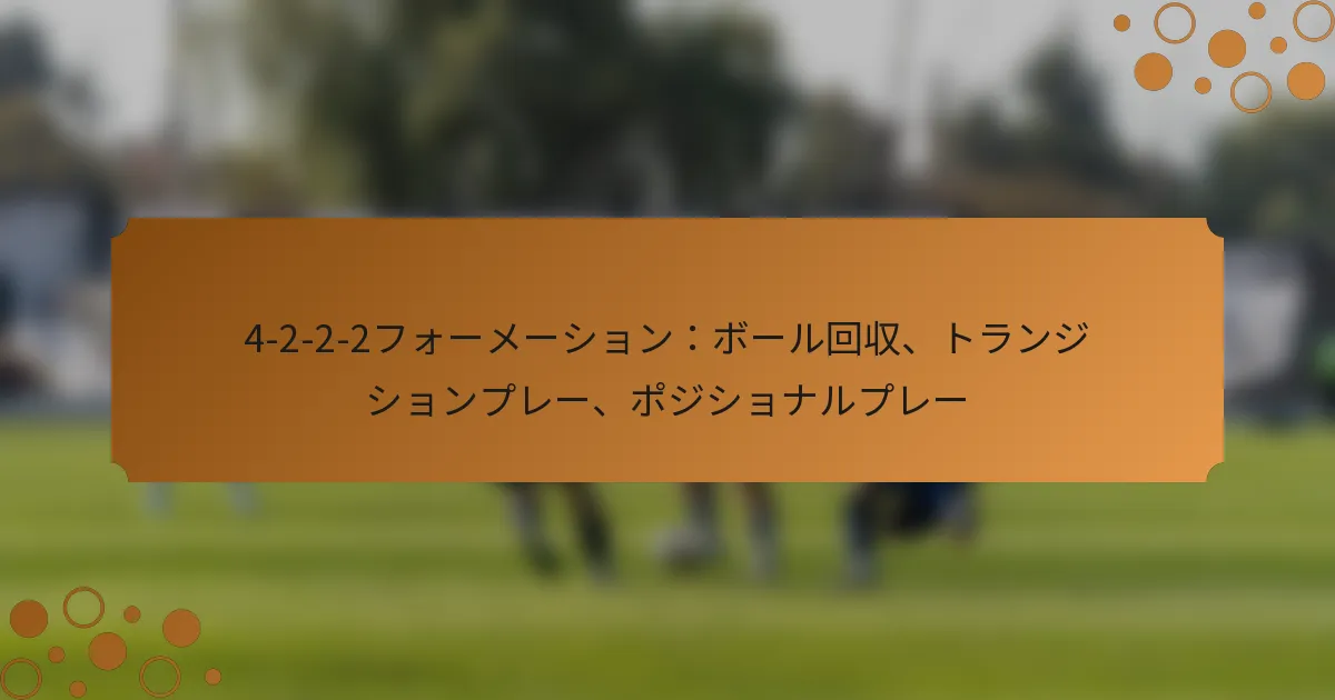 4-2-2-2フォーメーションにおけるボール回収は、コンパクトな形状と連携したプレスに依存して迅速にボールを取り戻します。このシステムは、ミッドフィールダーとフォワードが協力してプレスのトリガーを作り、相手のミスを利用する重要性を強調します。