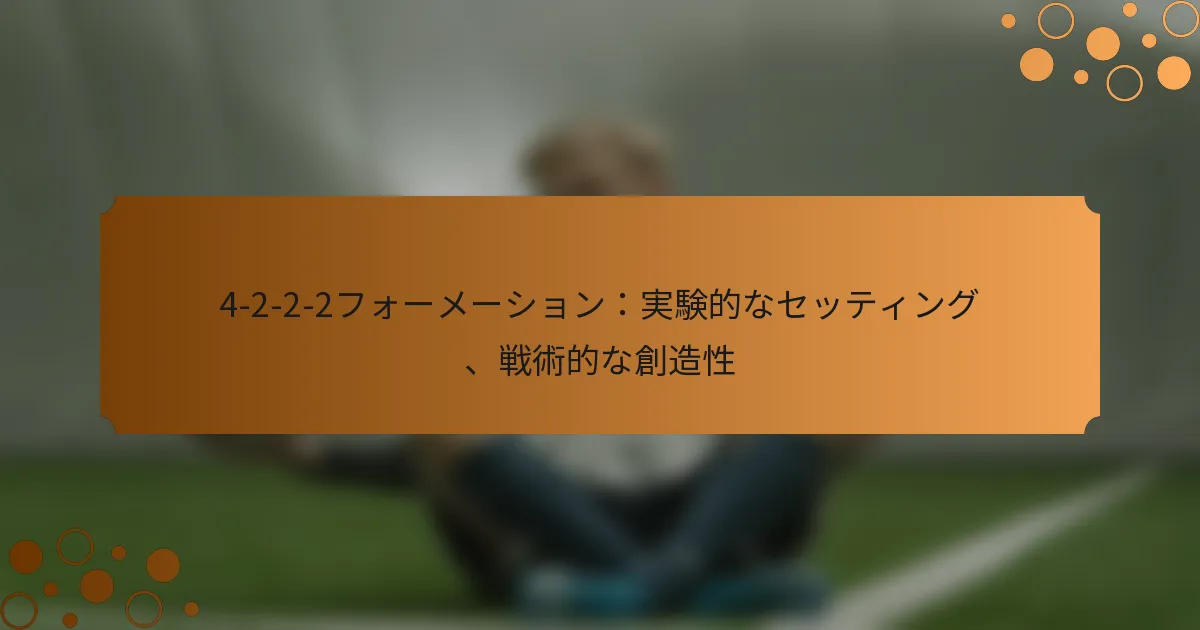 4-2-2-2フォーメーション:実験的なセッティング、戦術的な創造性