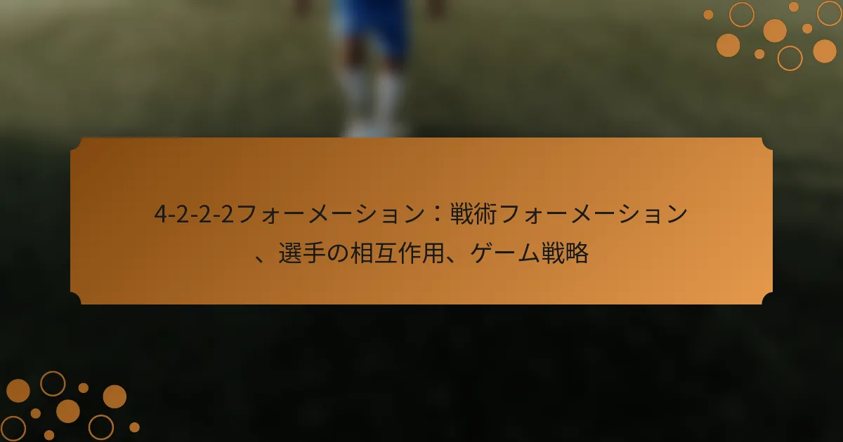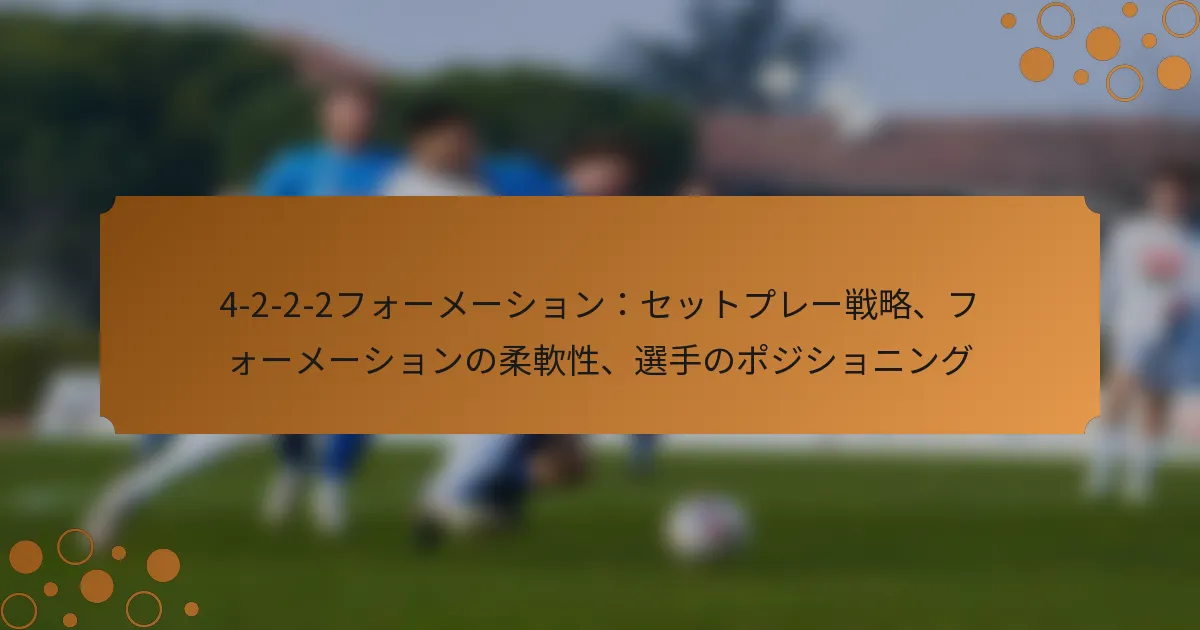 4-2-2-2フォーメーションは、サッカーにおける戦略的な配置であり、4人のディフェンダーと2組のミッドフィルダーおよびフォワードを特徴とし、守備の強さと攻撃の可能性をバランスよく保っています。ゾーンカバレッジを採用することで、チームは特定のエリアを効果的に守備し、相手の攻撃に柔軟に対応することができます。このフォーメーションは、オーバーロードを生み出すことも可能にし、チームが重要なエリアで相手を上回ることを可能にし、ゲームのコントロールを強化し、得点機会を増加させます。